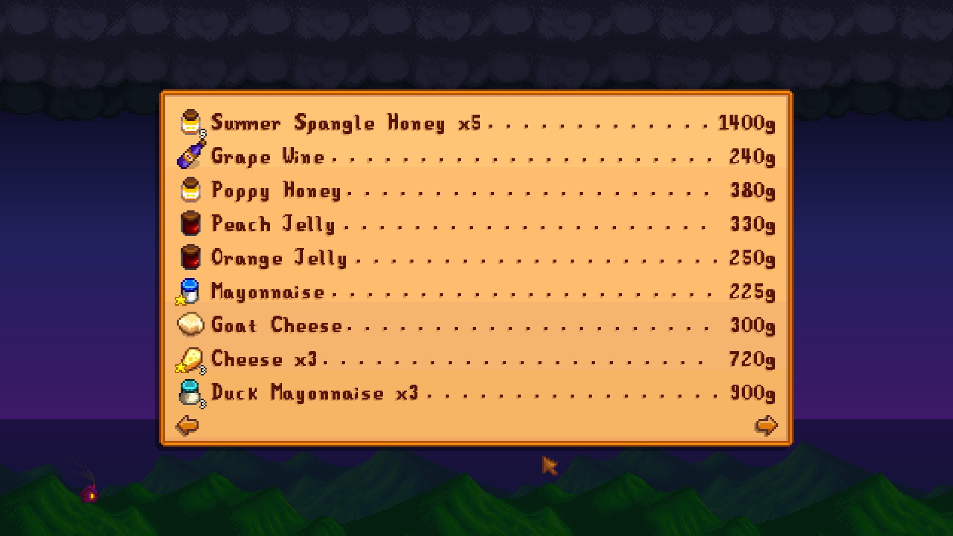My personal choice for earning money was to take the Artisan skill and sell lots of mayonnaise. My chickens and ducks lay eggs, I pop the eggs into my mayonnaise machines, and I sell the resulting mayo for 💰. I also do a lot of pickling and make jelly from all the crops I grow. My cows and goats produce milk which I turn into cheese to sell. I also make wine and beer with my many kegs.